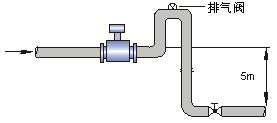 若管道落差超过5m时,在传感器的下游安装排气阀;