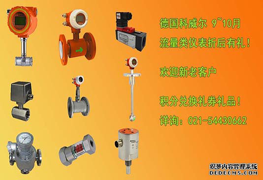 为了答谢新老客户对德国科威尔的真诚厚爱,公司特在2014年9~10月举行感恩回馈活动,凡是在此期间购买流量类仪表的客户在享受超低折扣的基础上还可积分兑换礼品礼券。超值惊喜等你来,时间有限,快快加入吧!详情请咨询TEL:021-54430662.