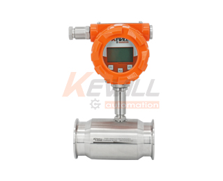 涡轮的转速通过装在机壳外的传感线圈来检测.当涡轮叶片切割由壳体内永久磁钢产生的磁力线时,就会引起传感线圈中的磁通变化.传感线圈将检测到的磁通周期变化信号送入前置放大器,对信号进行放大、整形,产生与流速成正比的脉冲信号,送入单位换算与流量积算电路得到并显示累积流量值;同时亦将脉冲信号送入频率电流转换电路,将脉冲信号转换成模拟电流量,进而指示瞬时流量值.